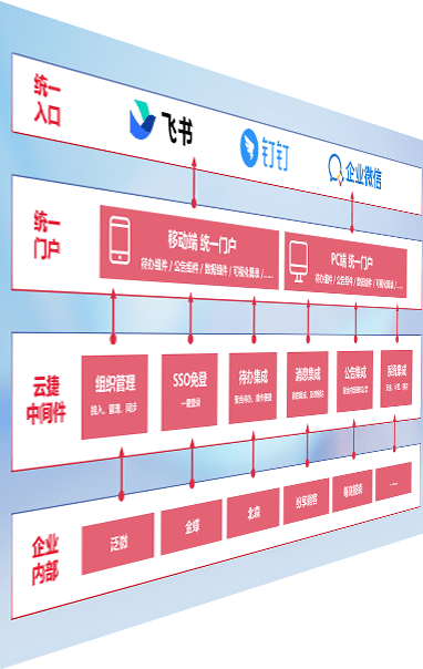 对协作平台提供支持服务,,,支持企业应用与协作平台对接,,,包含组织同步、、消息集成、、、待办集成等。。。。支持目前主流的协作平台:钉钉、、、、企微和飞书。。。。